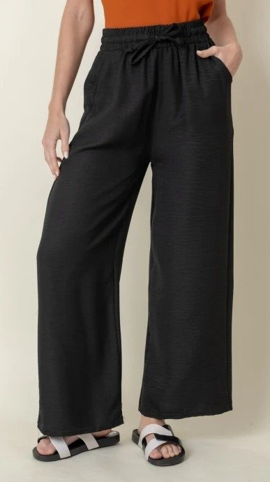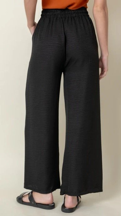 Sumá comodidad y estilo a tus looks con nuestro Pantalón Wide Leg Black Básico, confeccionado en tela liviana, fresca y con caída suave. Su diseño amplio y fluido estiliza la figura, mientras que la cintura elastizada con cordón regulable te asegura un calce perfecto todo el día.