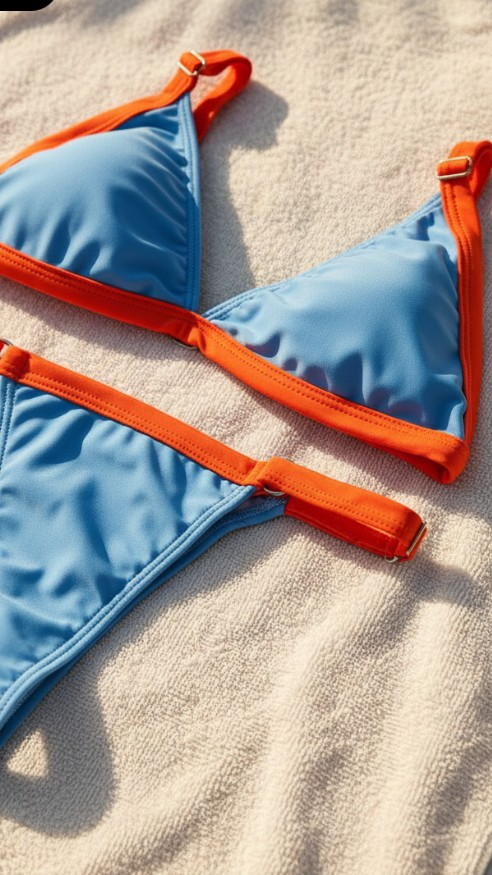 El Bikini Bicolor Celeste / Naranja es un modelo moderno, fresco y súper favorecedor, ideal para quienes buscan un diseño simple con un toque de color. Su corpiño triángulo regulable permite ajustar el calce según tu preferencia, mientras que la bombacha colaless regulable realza la figura y brinda comodidad.
