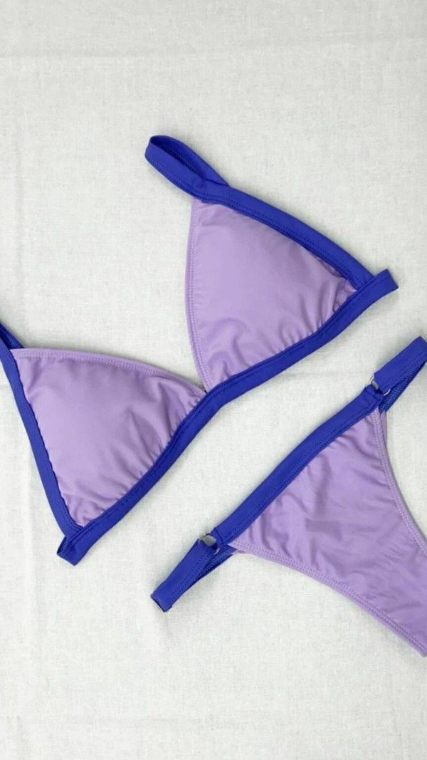 El Bikini Bicolor Lila / Lavanda es un modelo moderno, fresco y súper favorecedor, ideal para quienes buscan un diseño simple con un toque de color. Su corpiño triángulo regulable permite ajustar el calce según tu preferencia, mientras que la bombacha colaless regulable realza la figura y brinda comodidad.