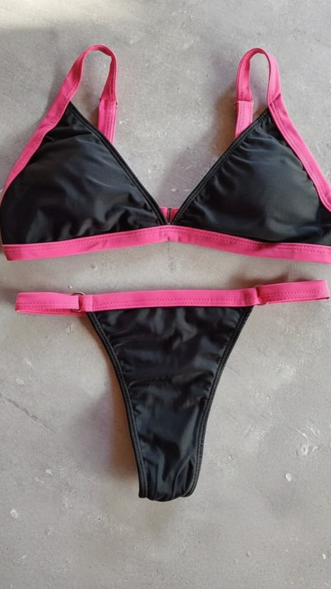 El Bikini Bicolor Negro / Fucsiaes un modelo moderno, fresco y súper favorecedor, ideal para quienes buscan un diseño simple con un toque de color. Su corpiño triángulo regulable permite ajustar el calce según tu preferencia, mientras que la bombacha colaless regulable realza la figura y brinda comodidad.